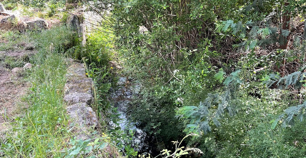 This property includes 5,000m2 of fertile land, a private dirt access, various fruit trees, and a stream at far border.